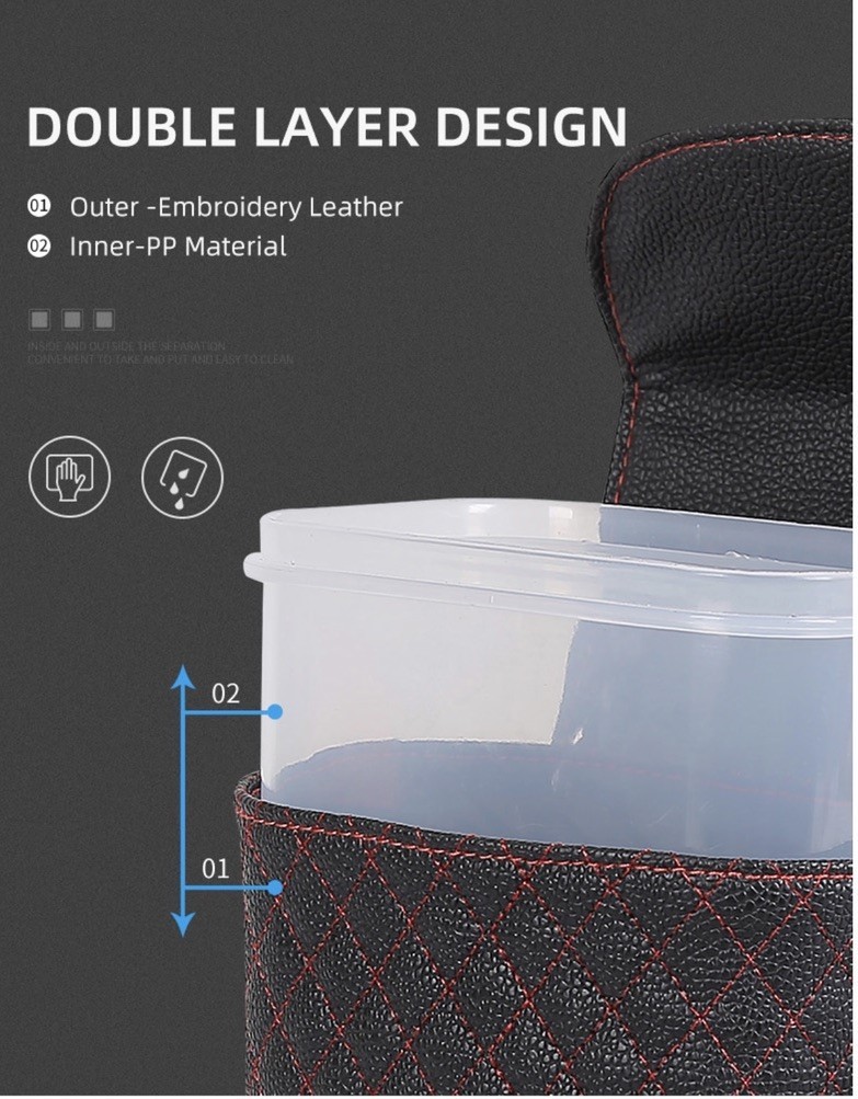 حقيبة السيارة الجلدية متعددة المهام صممت من الجلد الفاخر هي المنتج الأكثر طلبا لحل مشكلة تبعثر المشروبات أو الأغراض بالسيارة , نظافة سيارتك تمثلك وحقيبة كول آند هاندي الجلدية الأنيقة هي ما تحتاجه للحفاظ على سيارتك أنيقة ومميزة , مثالية الحجم ولها استخدامات متعددة منها : التخلص من أي مخلفات ، تعليق الحقائب الأخرى عليها و الأكياس , تخزين الفواكه و المشروبات و أي شيء آخر.